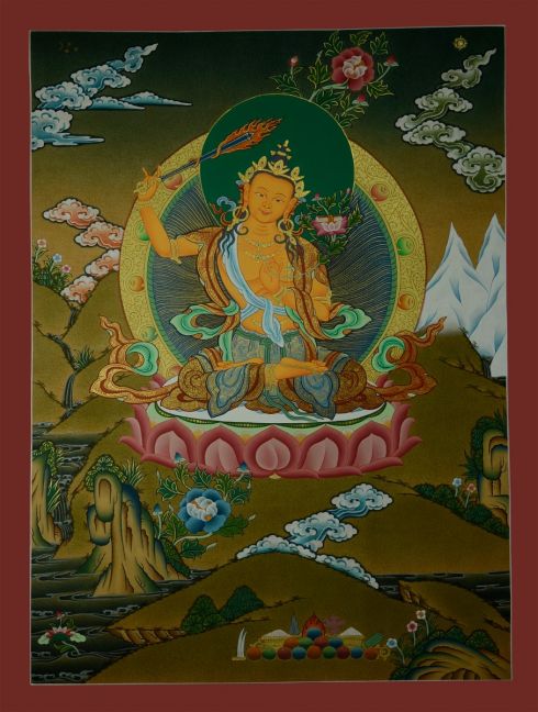 Manjushri - The Bodhisattva of Wisdom thangka beautifully painted by artist from Nepal.