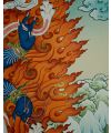 Black Mahakala is an aspect of Mahakala, one of the eight great Dharmasalas, or Dharma Defenders. Also known as the Protector of Wisdom, Mahakala is a wrathful deity who courageously protects the Buddhist teachings and those who study them from harm and evil forces. Despite Mahakala's always terrifying appearance, he is a Bodhisattva, an embodiment of compassion who acts for the benefit of all sentient beings. His function is to avert the inner and outer obstacles that prevent practitioners from attaining spiritual realizations, as well as to foster the necessary conditions for their practice. It is said that by simply making a wish for protection to Mahakala, a sincere seeker's needs will be met.