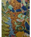 Black Mahakala is an aspect of Mahakala, one of the eight great Dharmasalas, or Dharma Defenders. Also known as the Protector of Wisdom, Mahakala is a wrathful deity who courageously protects the Buddhist teachings and those who study them from harm and evil forces. Despite Mahakala's always terrifying appearance, he is a Bodhisattva, an embodiment of compassion who acts for the benefit of all sentient beings. His function is to avert the inner and outer obstacles that prevent practitioners from attaining spiritual realizations, as well as to foster the necessary conditions for their practice. It is said that by simply making a wish for protection to Mahakala, a sincere seeker's needs will be met.