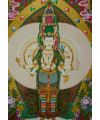 Avalokiteshvara manifested in this 1000 armed, 11 faced form as Avalokita, gazing upon us with companssion with his 11 faces, and the eyes that are found on the palm of every hand. With his infinite compassion, Avalokita eternally strives to free us of our unhappiness and suffering. The thousand arms represent his multi-faceted, skilful means of liberation us with the Dharma, While the scope of his arms shows the great expanse of his mind: the is always ready to catch and help us.