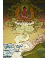 Jambhala is a wealth deity whose blessings remove the obstacle of poverty, bringing wealth and abundance to pure Dharma practitioners. As it is difficult to attain spiritual realizations while afflicted by lack of resources, Jambhala generates prosperity so that practitioners have the time, energy, and means to accomplish. According to the Sutras, while Shakyamuni Buddha was teaching one day, demons tried to disturb and confuse the Buddha. Jambhala appeared in front of the Buddha and protected him. Recognizing Jambhala's courageous action, the Buddha asked Jambhala if he would like to become a Dharma Protector in order to help all sentient beings. Jambhala accepted the Buddha's offer, and since then he has offered immediate assistance to all who call his name or chant his mantra. His blessings bestow good luck, increase virtues, prolong life, increase intelligence, and provide both material and spiritual benefits.