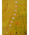 Name Gold Avalokiteshvara Thankga Painting Size with Border 42.5" Long x 31" Wide Size without Border 39" Long x 29" Wide Material Original Hand-Painted Cotton Canvas with 24 Karat Gold Detailing Style Tibetan Weight 0.7 kg Ships From Bhaktapur, Nepal Shipping Provider Express Shipping Time Usually ships within 48 hours. Allow 3-5 business days for delivery worldwide. Insurance Insurance is included in the shipping cost. 1000 Armed Avalokiteshvara – Bodhisattva of Boundless Compassion Avalokiteshvara manifested in this 1000 armed, 11 faced form as Avalokita, gazing upon us with companssion with his 11 faces, and the eyes that are found on the palm of every hand. With his infinite compassion, Avalokita eternally strives to free us of our unhappiness and suffering. The thousand arms represent his multi-faceted, skilful means of liberation us with the Dharma, While the scope of his arms shows the great expanse of his mind: the is always ready to catch and help us. His eight principle hands clasp different implements to show the various ways he uses to help us. The centre two hands clasp a wish-fulfilling jewel: the attainment of compassion helps us to become a wish-fulfilling jewel to others; it is clasped at the heart to remind us that sentient beings are most dear to us, and that we should develop compassion for them. The right hands clasp a mirror, the realisation of ultimate truth, penetrative wisdom and insight; a crystal mala to remind us of the importance of persevering with our Dharma practice, and putting what we learn into action; and a lotus to denote the ultimate state of purity, the curtailing of anger and development of pure compassionate motive that we will achieve with his practice. The left hands clasp as long life vase to show that with his practice, the causes of early death are cut and that the potential for the ultimate state of immortality, Enlightenment, can be attained; and a bow and arrow to symbolize that sometimes even warthful menthod are required for him to help us. The remaining hand is helf in a gesture of giving, telling us that he can give us ultimate protection from fears and negative states of mind. As the embodiment of enlightened compassion, Avalokita and his 1000 arms also symbolize that combined synthesis of the compassion of the 1000 Buddhas that will appear in his golden eon. As such, when we recite Avalokita’s mantra, it is equivalent to praying to 1000 Buddhas and tapping into their combined compassionate energy.