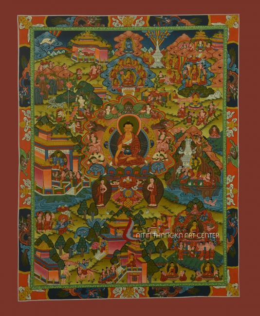 Note: Please note that the actual colors of this Buddha Life Story Thanka vary due to differences in monitor color depth and make. The color shown is as close as possible to the actual colors of the Thanka Painting.
