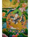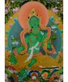 This is beautiful Green Tara thangka or thanka. It helps to eliminate all demoniac and karmic obstacles, eradicates disaster and lengthens your lifespan. Green Tara Thangka