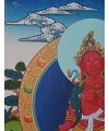 The Red Tara Thangka is a powerful and vibrant Tibetan Buddhist painting that portrays Red Tara as an embodiment of compassion and active energy.