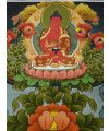 No deity in the Buddhist pantheon is more popular than Tara. She is especially known for her power to overcome the most difficult situations, giving protection against dangers and all kinds of fear. She is depicted as a beautiful sixteen-year-old girl, in the prime of her youth, full of energy, playfulness, and infinite kindness. She reaches out her right hand in the gesture of granting protection, freeing from fear, and overcoming obstacles and difficulties. With her right foot stepping forward, she is alert, determined, and ready to actively help all who call upon her. She holds the stem of a blossoming blue lotus flower, signifying her spiritual perfection and her victory over negative forces.